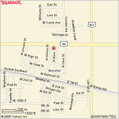 ¾ mile west of US 421 on US 30, between Illinois & Main Streets